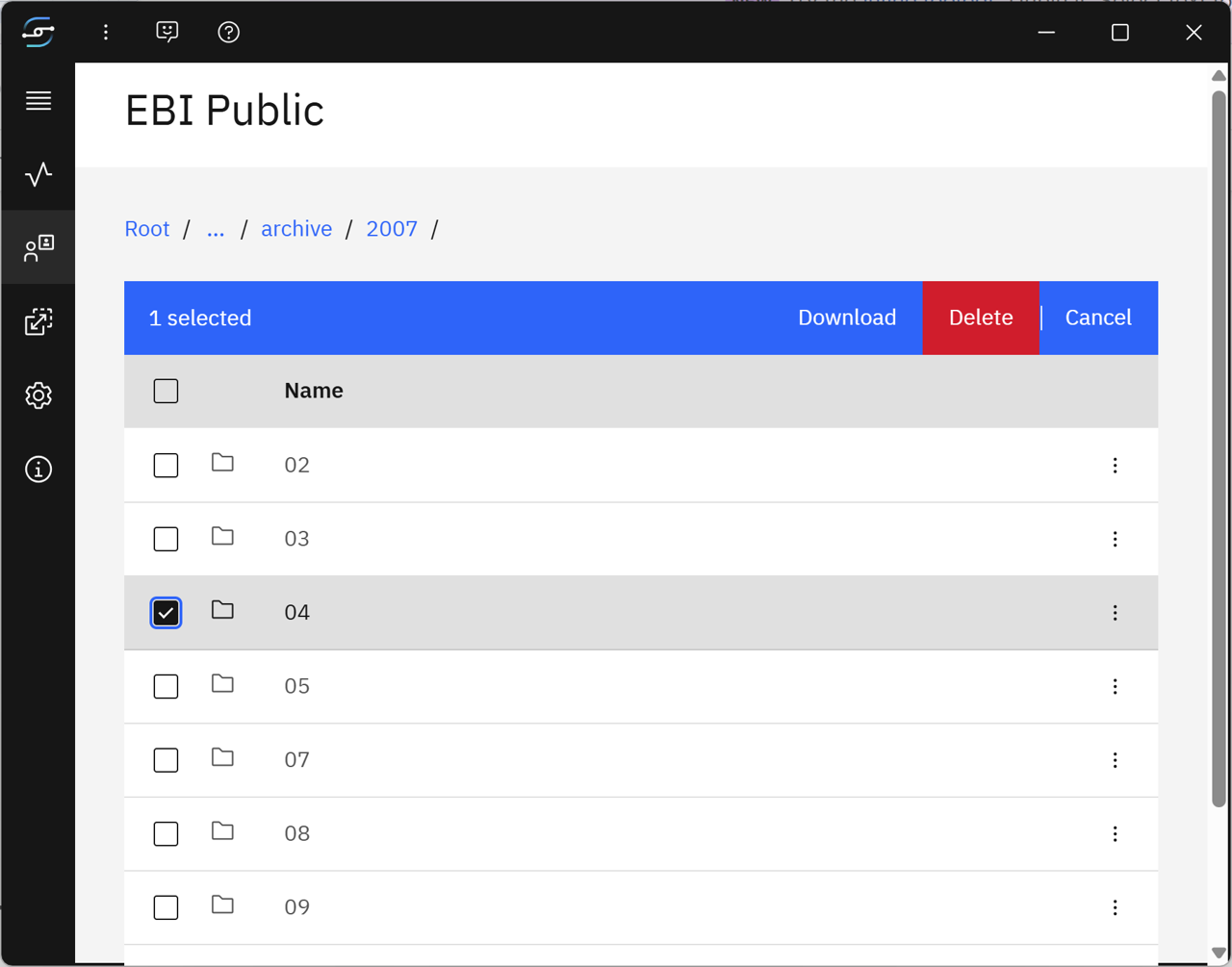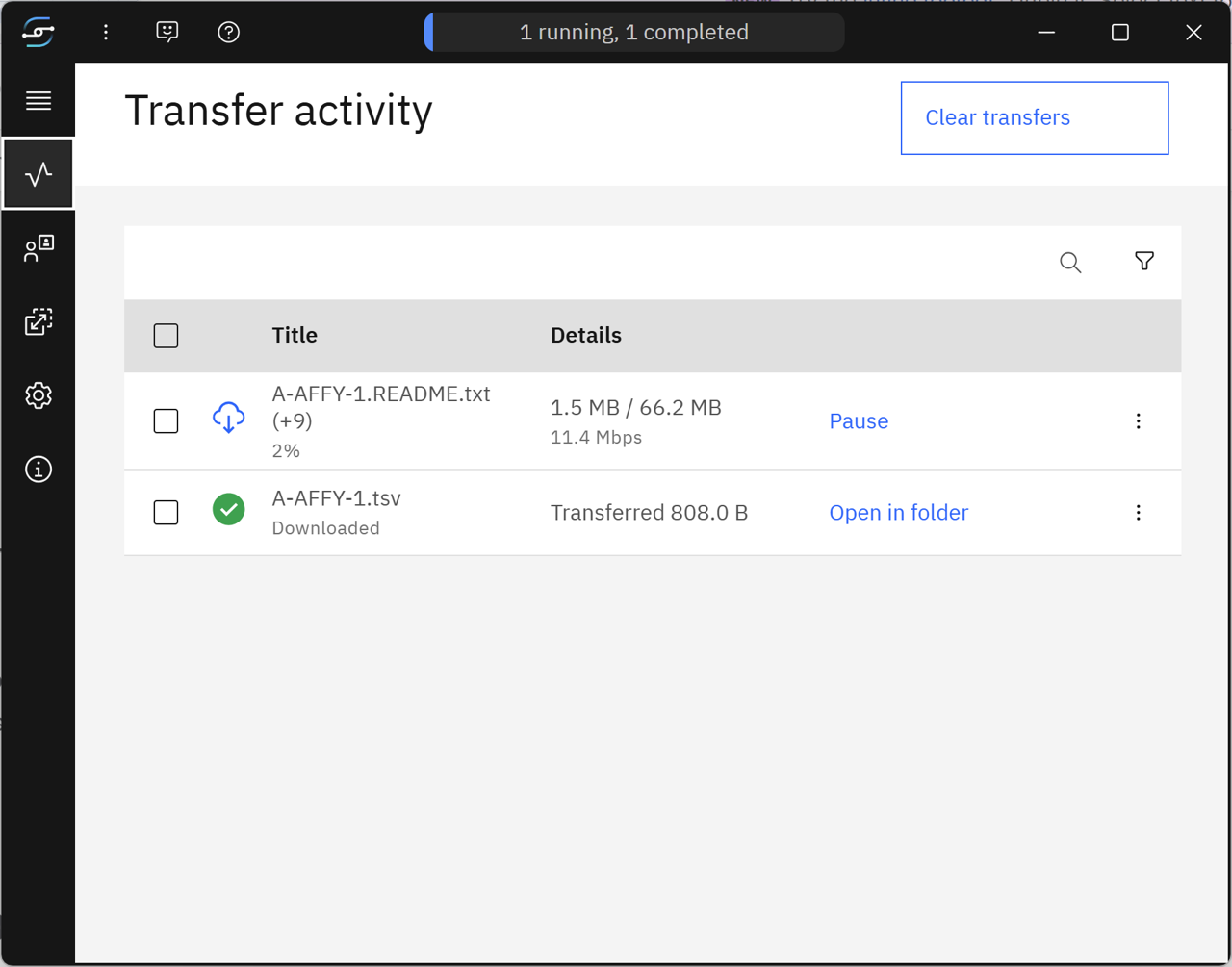 You can use your existing transfer application to transfer files with the IBM Aspera High-Speed Transfer Server at EBI.